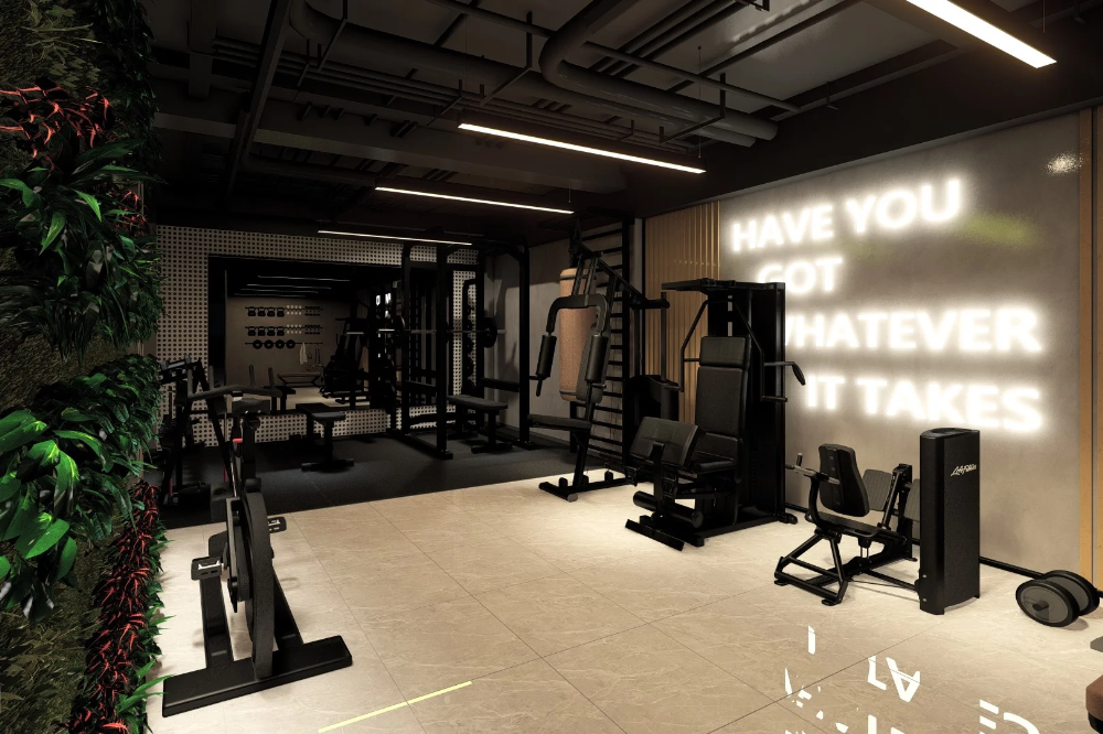 プライベートレッスンや貸切利用を想定したラグジュアリーなフィットネス施設の内観CGパースです。
